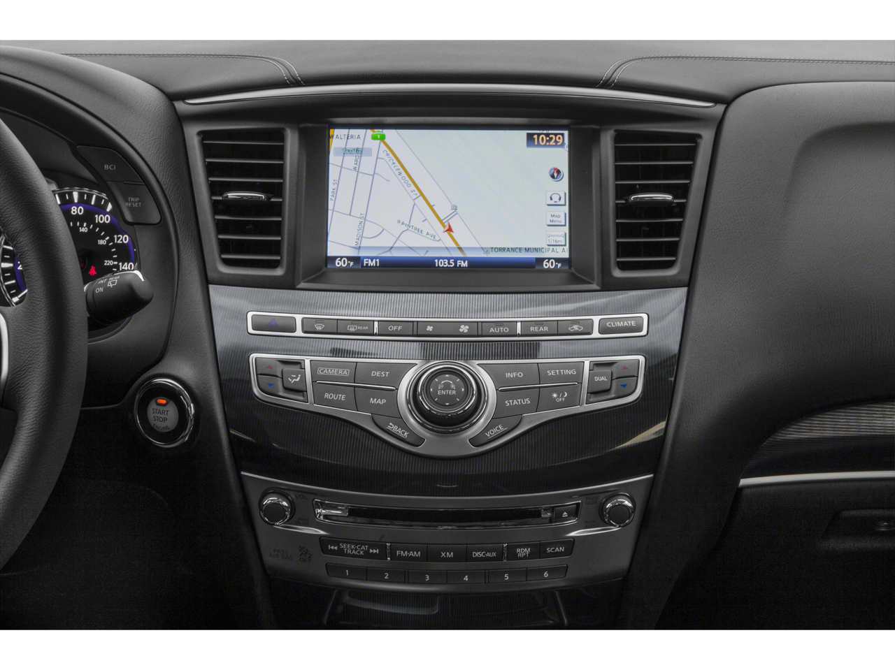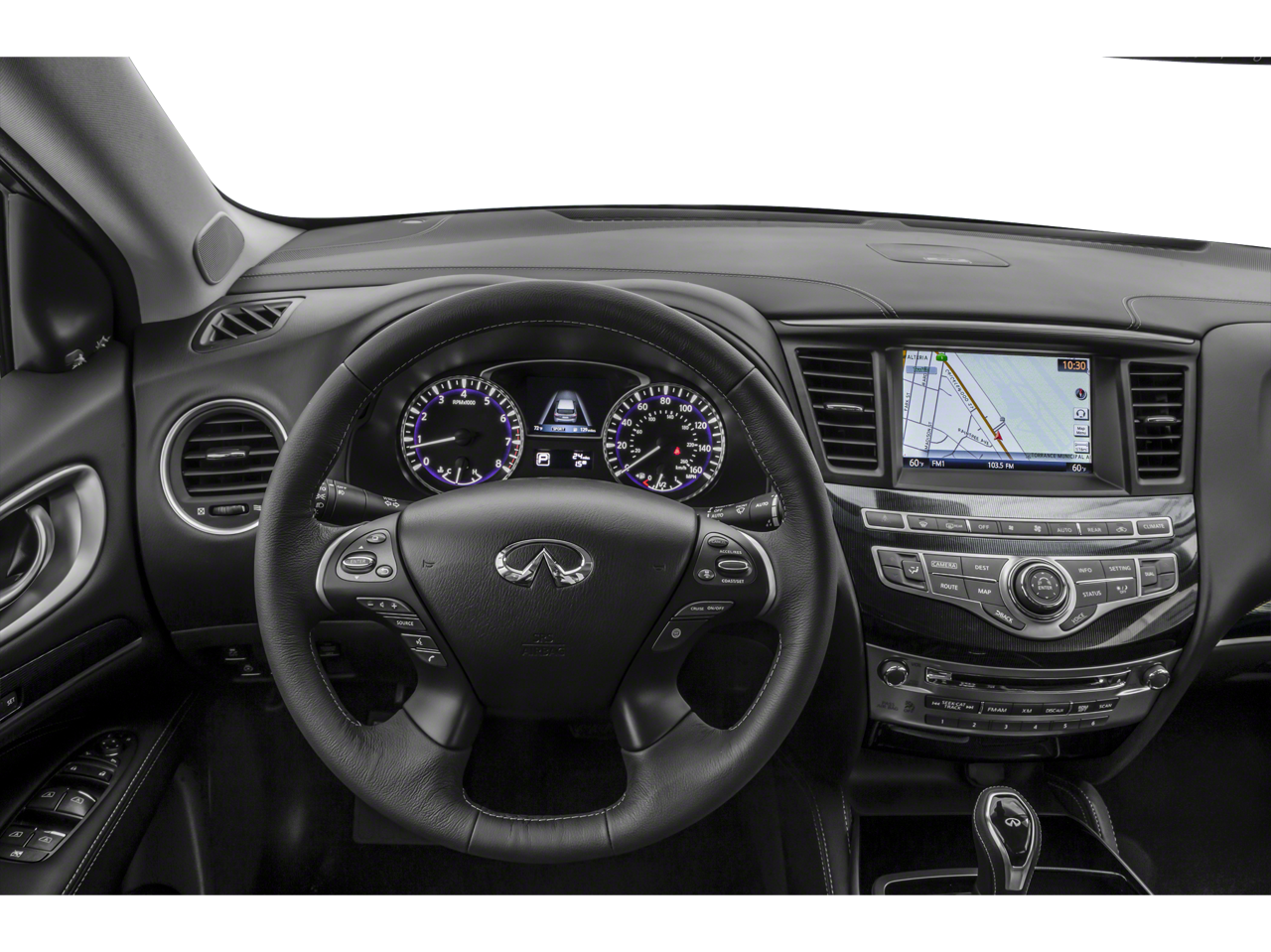 - Radio: AM/FM/CD Audio System -inc: 6 speakers, MP3 playback capability, Radio Data System (RDS), speed-sensitive volume control, INFINITI controller, auxiliary audio/video input jacks in front center console, 6 USB charging ports (charge only): front center console, illuminated (2X - 1 type A and 1 type C), rear center console-mounted, illuminated (2X - 1 type A and type C) non theater only and 3rd row (2X - type A), INFINITI InTouch w/8" WVGA color touch-screen vehicle information display, Bluetooth® hands-free phone system, hands-free text messaging assistant, streaming audio via Bluetooth® wireless technology, INFINITI voice recognition for audio, Bluetooth® and vehicle information including music search by voice, 2 USB ports for iPod and compatible devices, HD Radio, SiriusXM satellite radio w/3-month complimentary trial and SiriusXM Travel Link w/4 year complimentary trial access to weather, fuel prices, stock prices, sports scores and movie times